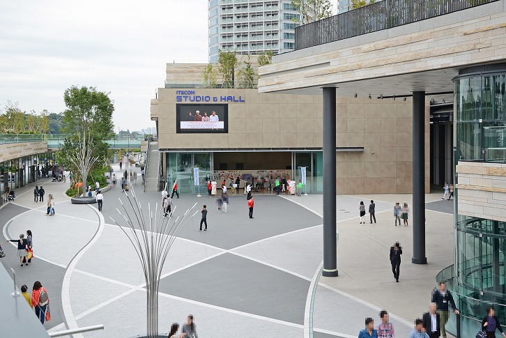 ショッピングセンター、オフィスビル、バスターミナル、タワーマンションにホテル、映画館、公園などが集まる複合開発エリア、二子玉川ライズ