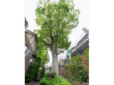 雰囲気ある洋館のコンパウンド。渋谷区指定の保存樹木である欅の大木が敷地内にあり、リビングルームやベットルームから緑の眺めます。