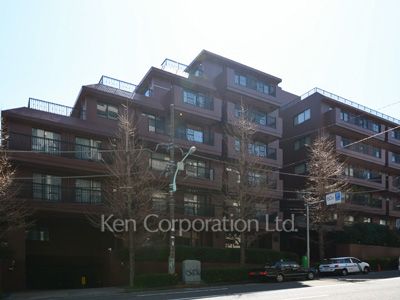 総レンガ調タイル貼りの重厚感ある外観が特徴の大建ドムス旧分譲のドムスシリーズ。広尾3丁目の落ち着いた雰囲気に佇む低層マンション。