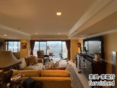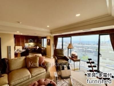 家具付きのお部屋です。南側には根岸湾VIEW,北側には森林公園が見渡せる解放感のあるお部屋です。プラズマTV3台とサウナも付帯しております。
