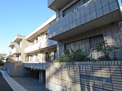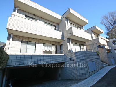 3駅2路線の利用が可能。世田谷八幡宮に隣接した緑豊かな住宅街に立地。2階建て、低層分譲賃貸マンション。タイル貼りの外観。3LDK~ファミリー向けマンション。