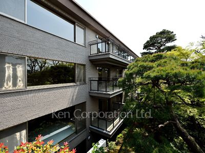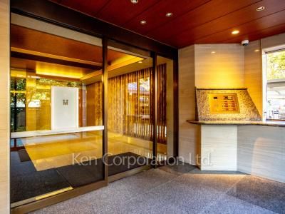 高級住宅地、渋谷区西原3丁目に佇む高級マンションです。マンション敷地内、エントランス付近には手入れされた植栽があり、素敵な佇まいです。エントランスホールのオブジェもまた見事です。