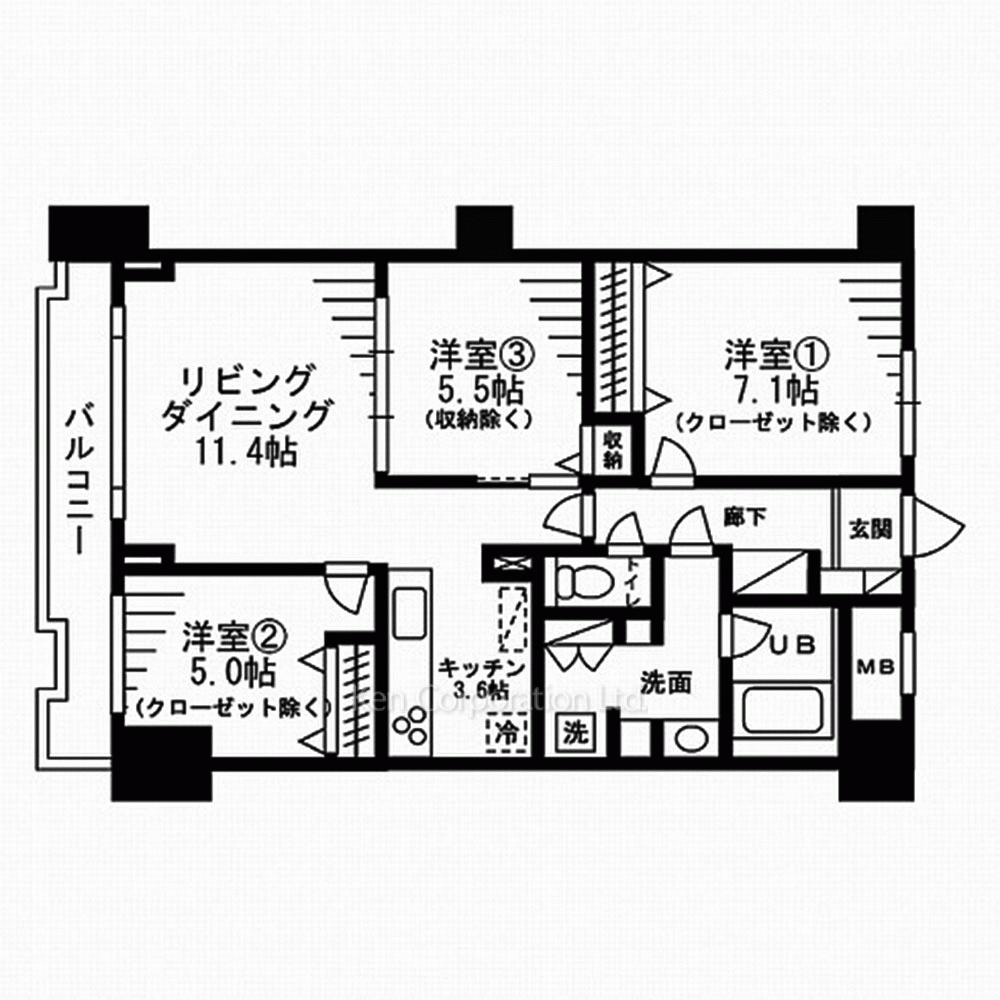 | 部屋設備 | エアコン、 給湯、 室内洗濯機置場、 浴室乾燥機、 バストイレ別、 洗面所独立、 クローゼット、 コンロ3口、 システムキッチン、 CATV |