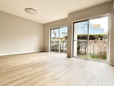 ルーフバルコニーと庭付きの3LDK角部屋住戸です。屋根付きの平置駐車場有。室内大規模リフォーム(キッチン、浴室、フローリング交換等)済みです。(2026年1月完工済)