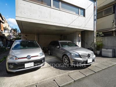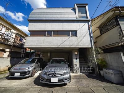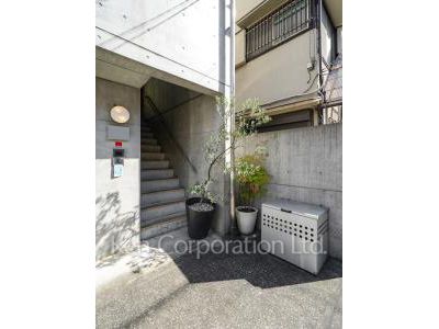 コンクリート打ち放し。モダンなデザインの建物です。都営浅草線の戸越駅より徒歩1分の好立地にあり、閑静な立地です。【戸越アパートメント】