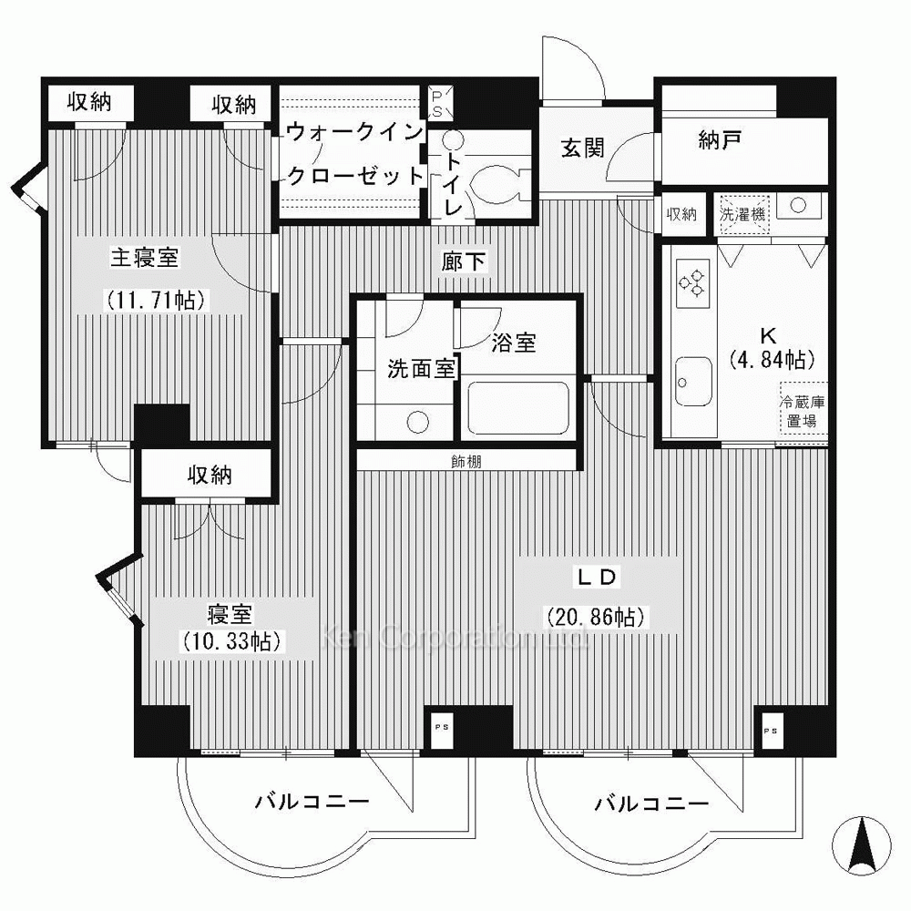 | 間取り / 方位 | 2LDK+WIC / 南 |