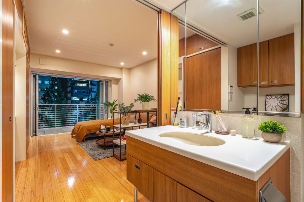 麻布十番駅徒歩3分で、全室網代公園に面した立地に所在する、KEN企画マンション。前面開放サッシュから広がる開放感のあるバルコニー、バンブーを使用したフローリング、タイル張りの玄関とシンプルでありながらセンスのある内装となっております。