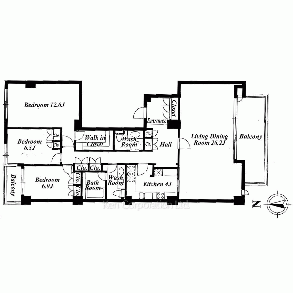 | 特徴 | バルコニー、 2面採光、 2面バルコニー、 LDK20帖以上 |