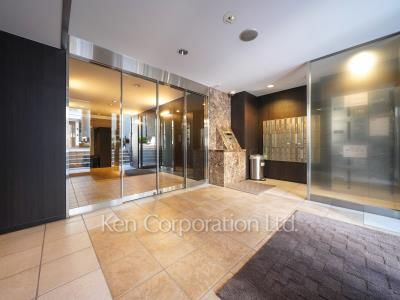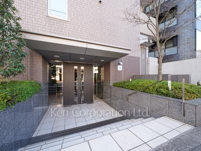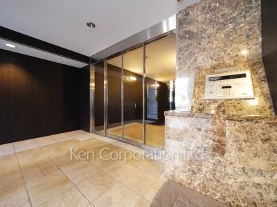 白金高輪駅徒歩7分。大手町・霞ヶ関などの主要ビジネス街への通勤利便性に優れています。モダンな雰囲気のエントランスに明るく品のあるエントランスホール。