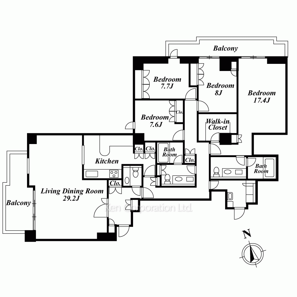 | 特徴 | 角部屋、 バルコニー、 2面採光、 2面バルコニー、 LDK20帖以上、 一部フローリング |
