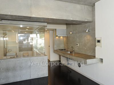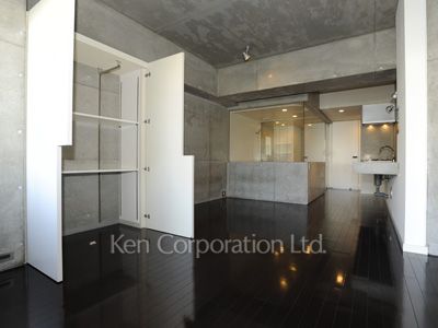 コンクリートの壁でデザイナーズ物件のシックな印象のお部屋です。16.7帖の広々としたLDKで仕切りも少ないため、開放的で一体感のあるお部屋となっております。