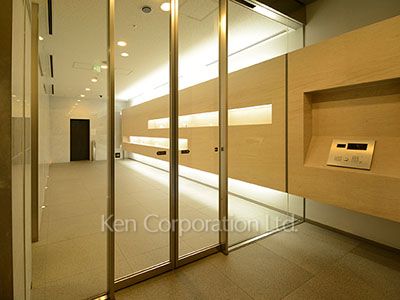 ガラス張りのスタイリッシュな外観。 オートロック、防犯カメラ、TVモニター付きインターフォンと 快適いっぱいな24時間を演出する設備。