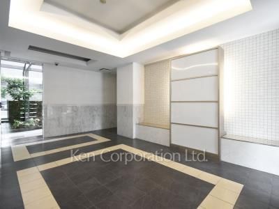 麻布十番、白金高輪を生活圏とする環境に立地するマンション。明るい共用エントランスと白を基調とした外観が明るく開放的な印象を演出。