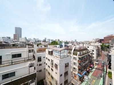 曙橋商店街に面しています。1階はドラッグストア「ココカラファイン」(10:00-22:00)。丸の内線「四谷3丁目」徒歩10分、大江戸線「若松河田」徒歩10分。3駅利用。