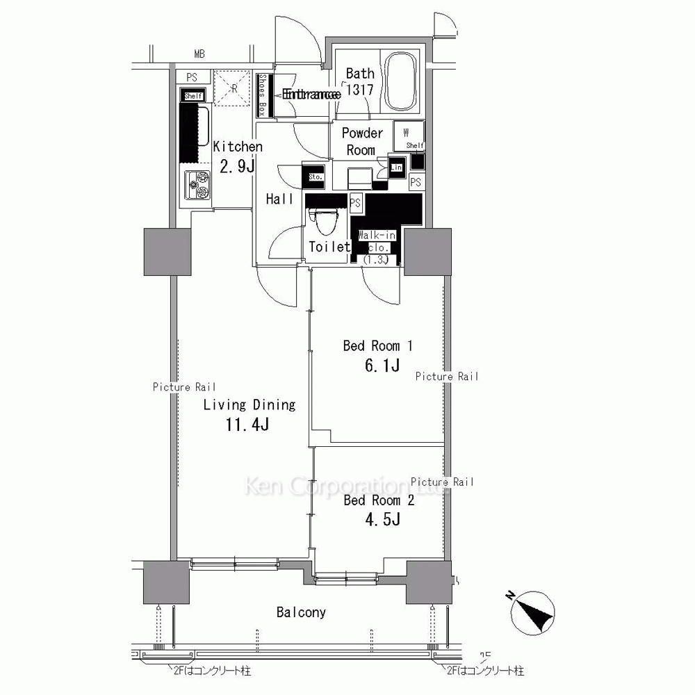 | 間取り / 方位 | 2LDK / 西 |