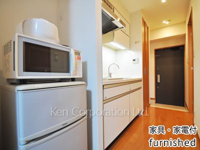 心地よい暮らしをサポートする質の高い設備仕様です。家具付(ベッド、テーブル、テレビ、カーテン等)賃貸マンション。 TVモニター付オートロック。防犯監視カメラ。浴室乾燥機。クッキングヒーター。