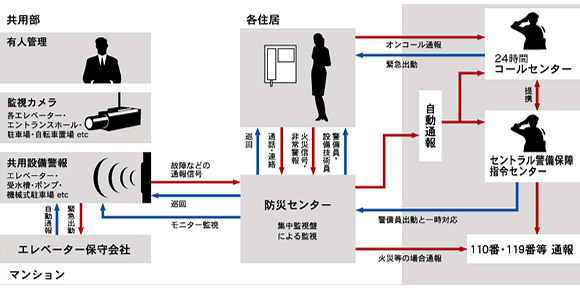 安心と安全の基準は、何よりも細心の心配りがあることです。このタワーレジデンスでは、24時間365日、人と機械を使った有人管理を実施。それに加えて、24時間コールセンターとセントラル警備保障の二重による24時間監視を行います。さらに、人の出入りの多いエントランスホールやエレベーター、目の届きにくい駐車場や駐輪場など、監視カメラが見守っています。都心の贅沢を心ゆくまで愉しんでいただくための丁寧なシフトが、深い安心感をお届けします。