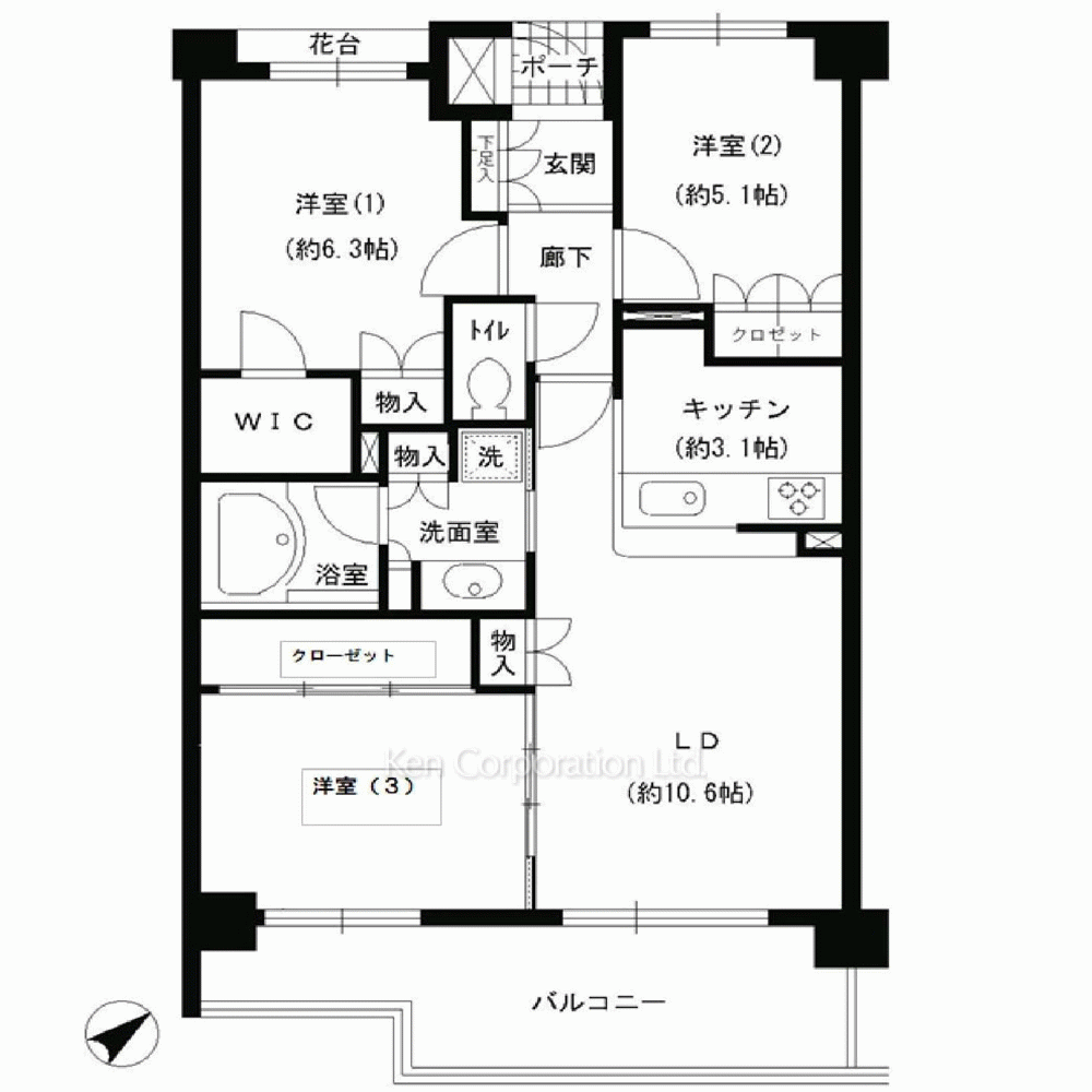 | 間取り / 方位 | 3LDK+WIC / 東南 |