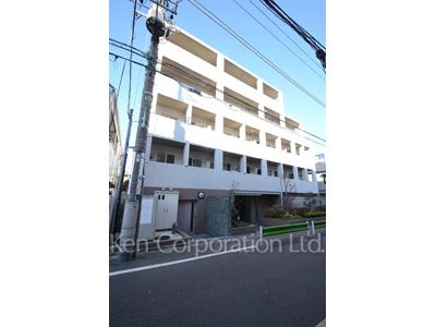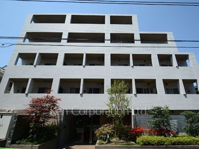 【プラチナコート中目黒】山手通りから祐天寺方面に100m進んだところに建つマンション。飽きのこないシンプルモダンなデザイン。目黒川まで190m、お花見もお楽しみ頂けます。