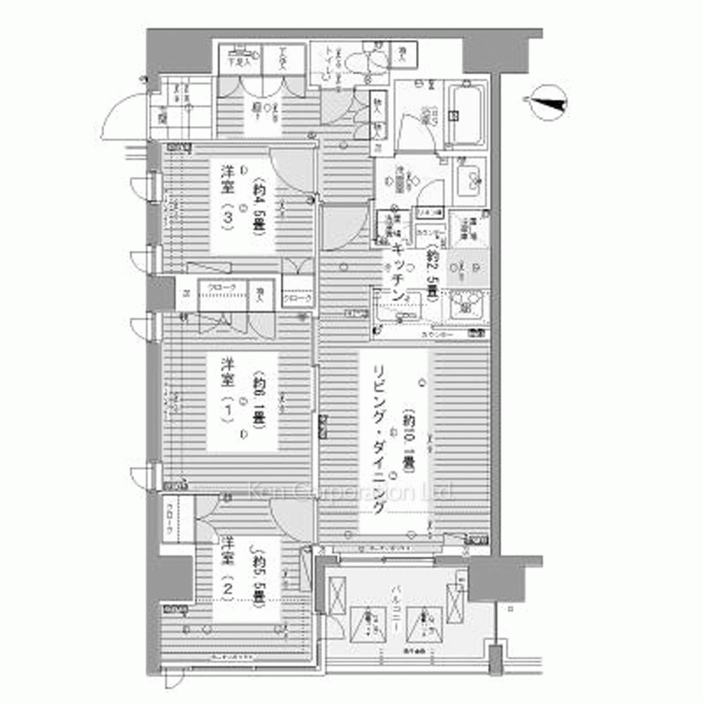 | 特徴 | 楽器相談、 バルコニー、 2面採光、 2面バルコニー、 床暖房、 一部フローリング |