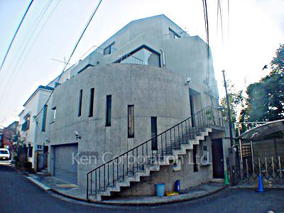 外観コンクリート打放し。閑静な住宅街に立地のデザイナーズ物件。有栖川公園、愛育病院まで徒歩3分(約200m)の立地。ペット飼育もご相談できます。