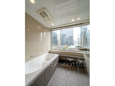 アメリカ大使公邸庭園・ホテル・オークラビュー。ワンフロア1世帯(EVセキュリティー付)1階飲食店舗有。ハイサッシ。三面採光。床吹き出し空調(一部)。即出湯の給湯システム。ハンズフリーキーシステム。三方向(北東南)テラス付。