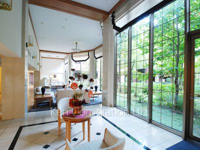 お食事など日常生活上便利な場所に立地しています。開放感のある吹き抜けの中庭があります。周囲の街並みを見晴らす高台に建築されてます。