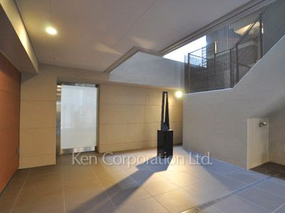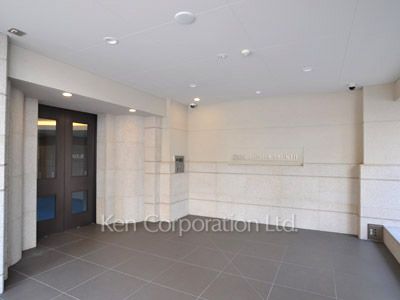 パークホームズ築地は、大通りから一本中に入っており、あかつき公園前の緑と調和する落ち着いた環境です。ソファを配したエントランスホールがホテルライクで高級感ある空間を演出しています。