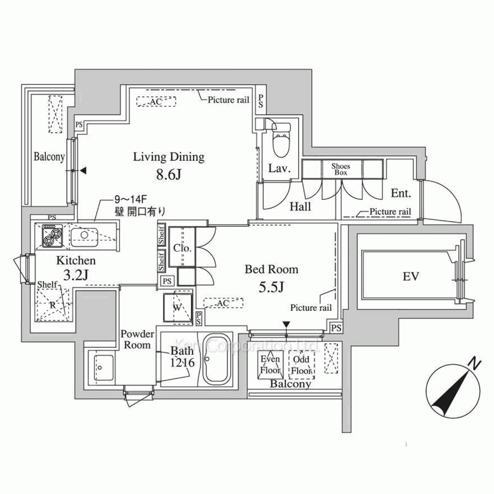 | 階建 / 所在階 | 地上14階建 / 8階部分 |