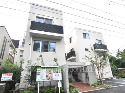 おしゃれな外観かつクールなデザイン。東急大井町線尾山台駅・九品仏駅 東横線と目黒線田園調布駅の自然豊かな場所にある外断熱を取り入れたエコなテラスハウス。