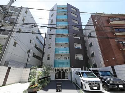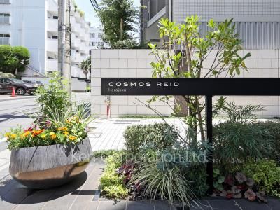 【コスモリード原宿】原宿エリアに建つ高級賃貸マンション。喧騒から外れた閑静な住宅街に立地しており、穏やかで住みやすい環境です。白と黒のモノトーンデザインの外観が原宿エリアに相応しいスタイリッシュな佇まいです。