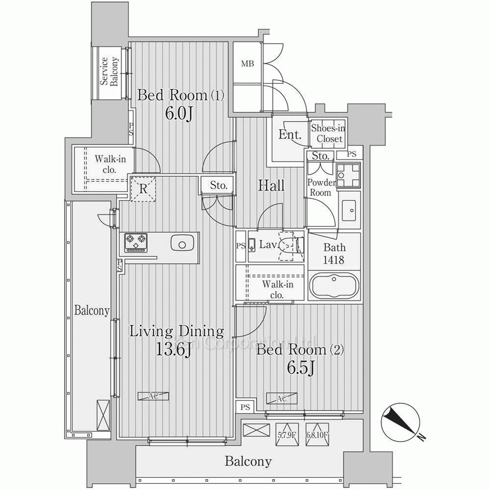 | 間取り / 方位 | 2LDK+2WIC / 北東 |