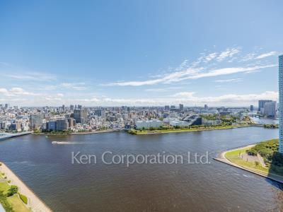 2024年8月キッチン・バスルーム・洗面台・トイレ交換。バルコニーから眼下に隅田川を臨む気持ちのいい眺望です。
