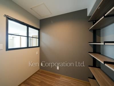 シェルフ設置のSRは、見せる収納部屋に。空間を間仕切る室内窓は、LDとの繋がりを感じられるためワークスペースとしても最適★バスルーム・洗面台・トイレをリフォーム!(2023年4月実施)