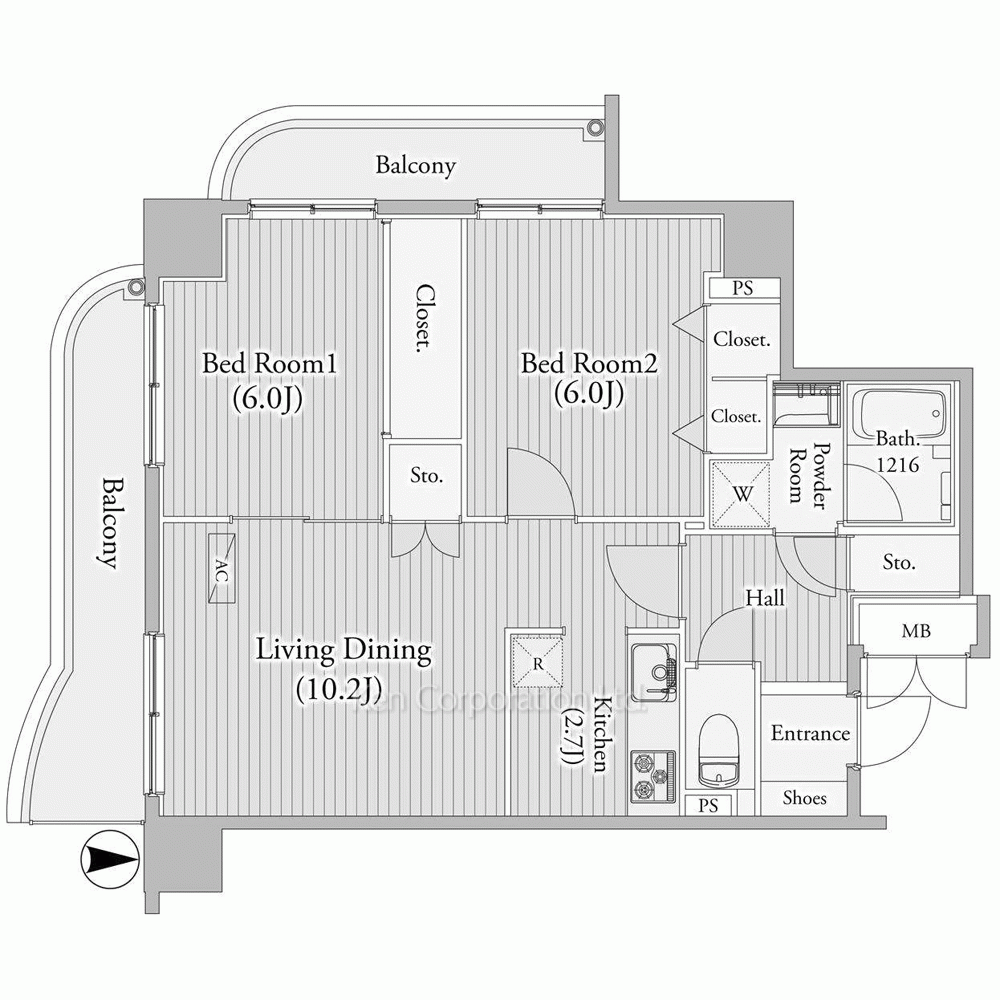 | 特徴 | バルコニー、 2面採光、 2面バルコニー、 一部フローリング |