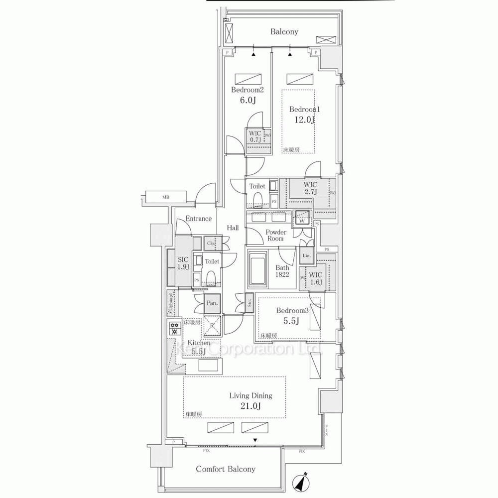 | 間取り / 方位 | 3LDK+3WIC / 東南 |