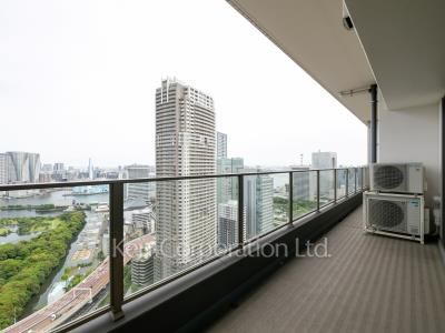 高層階プレミアム住戸の為、天井高2.7mと開放感のある部屋です。浜離宮恩賜庭園を眼下に望む眺望です。機械式駐車場ハイルーフ確保済み。