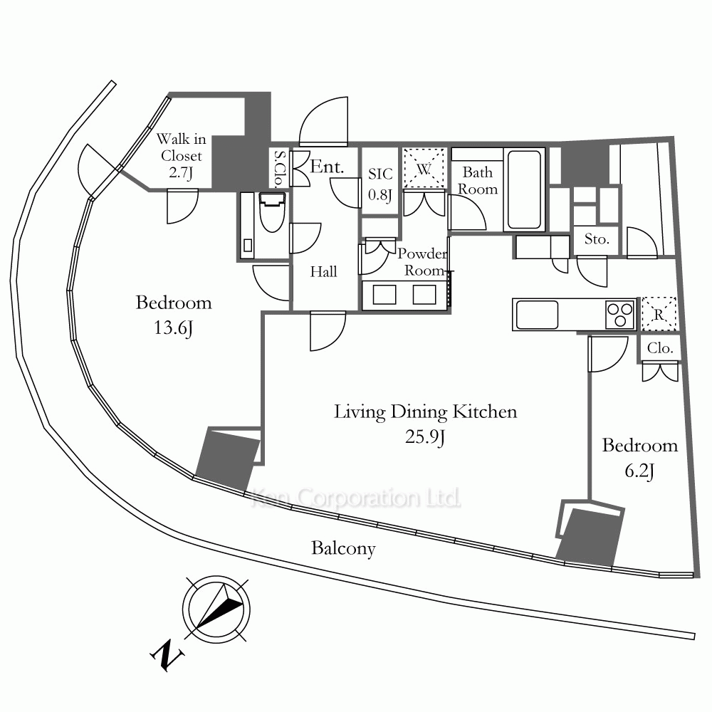 | 間取り / 方位 | 2LDK+WIC / 北西 |