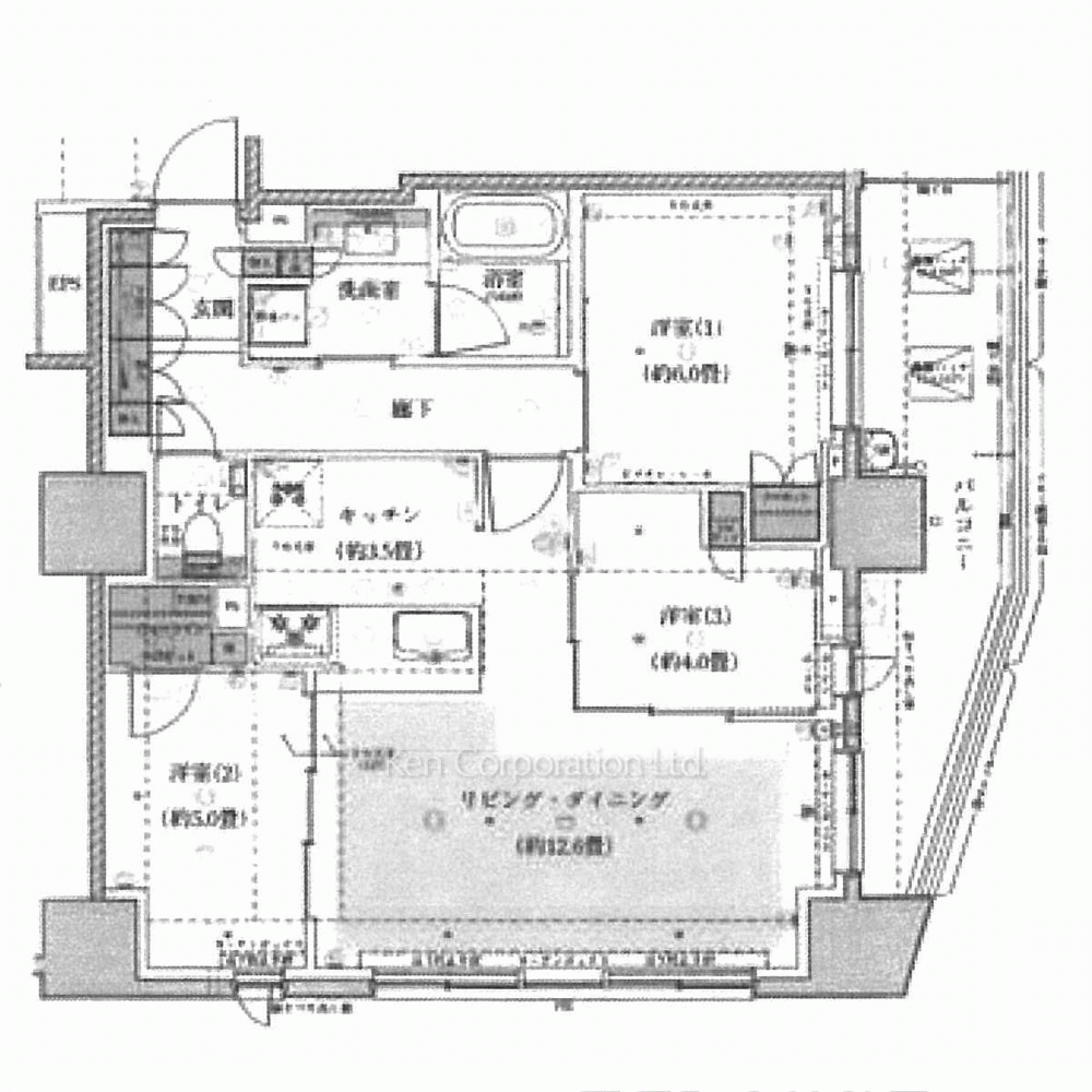 | 特徴 | 楽器相談、 眺望良好、 バルコニー、 2面採光、 床暖房、 全面フローリング |