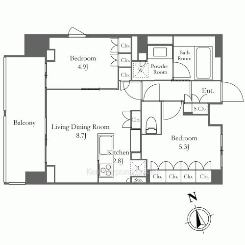 54.00㎡ (16.33坪) / 2LDK