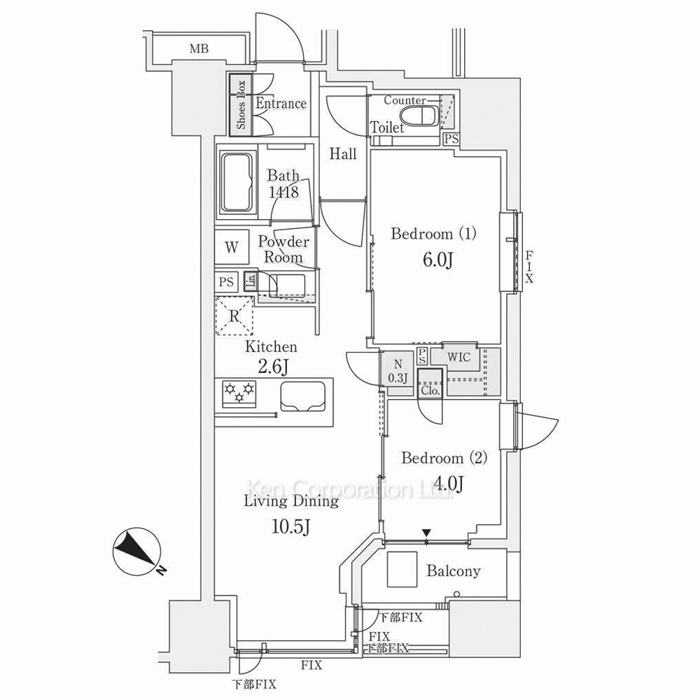 | 間取り / 方位 | 2LDK+WIC / 北東 |