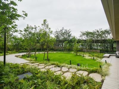 6,000㎡超の敷地には合計面積860㎡超の大きな2つの庭が設けられ、日々の暮らしをより豊かにする空間として愉しむことができます。外観は自然由来の土や木の色合いを意識した外壁を採用することで、コンセプトである自然を感じさせる住まいを実現してくれます。