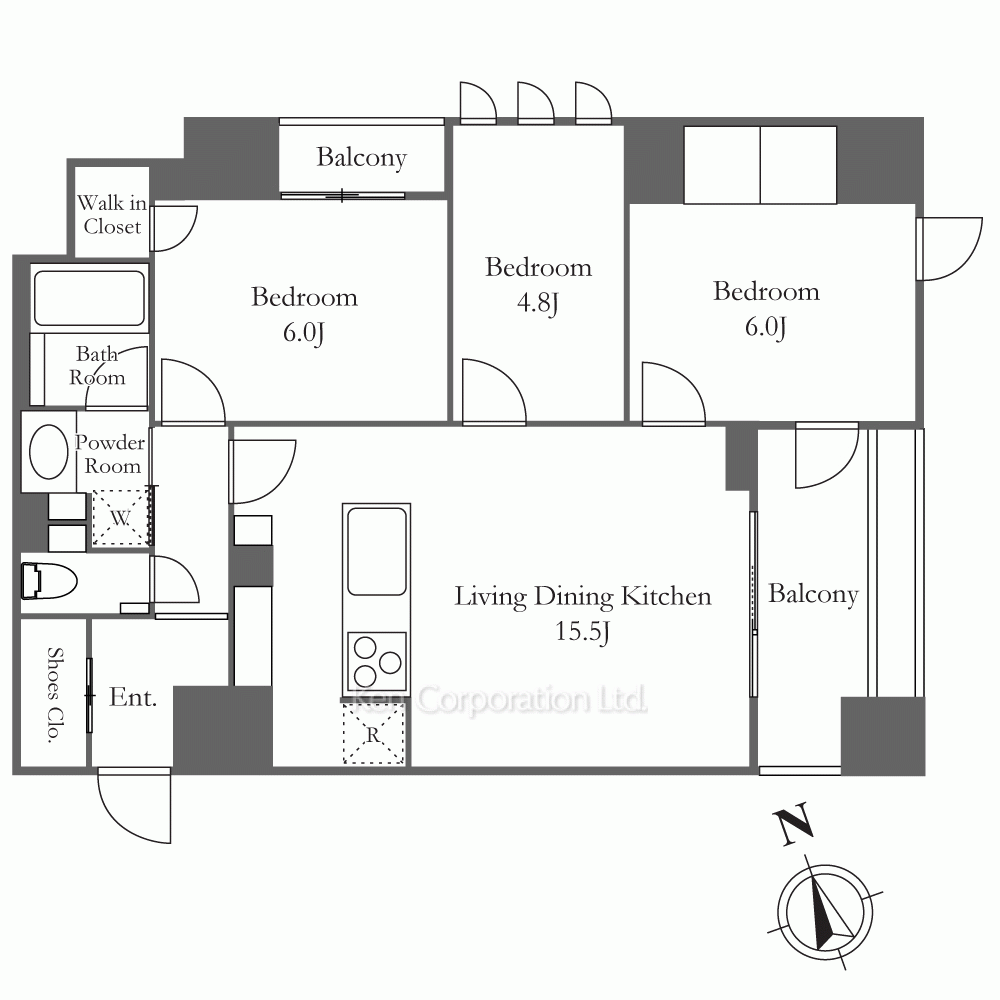 | 特徴 | バルコニー、 2面採光、 2面バルコニー、 一部フローリング |
