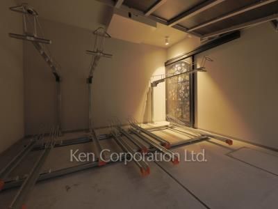 SHOTO NAGAYA(松濤長屋)は区立松濤小学校の南東側の通り沿い、北東角地に建つ鉄筋コンクリート造の住まいです。全8戸全てに、シャッター付きガレージと、屋上かテラスの素敵な専用スペースがついています。間取りはユニーク且つ機能的な生活空間を広い(151.75㎡~195.69㎡)スペースで実現。松濤ライフを堪能できる現代の長屋です。