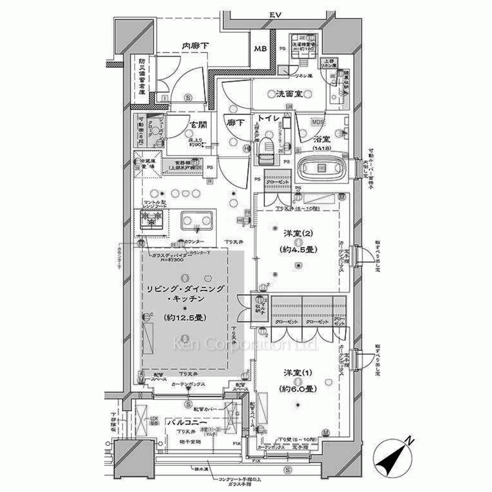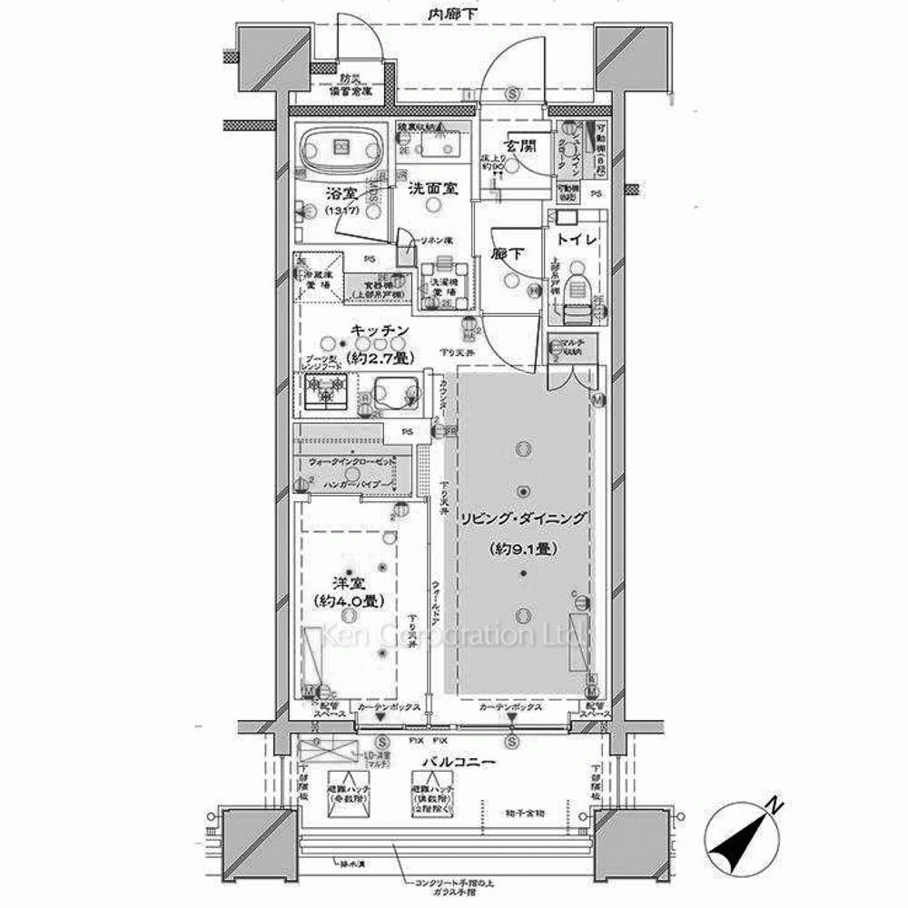 | 特徴 | 角部屋、 バルコニー、 2面採光、 床暖房、 一部フローリング |