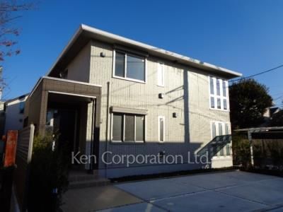 大岡山駅北側に広がる低層住宅街、南北に走る細い路地に建つ全四室の軽量鉄骨造アパートメント。大和ハウスの賃貸アパート「セジュールウィット」シリーズ規格、ALSOKホームセキュリティ付。
