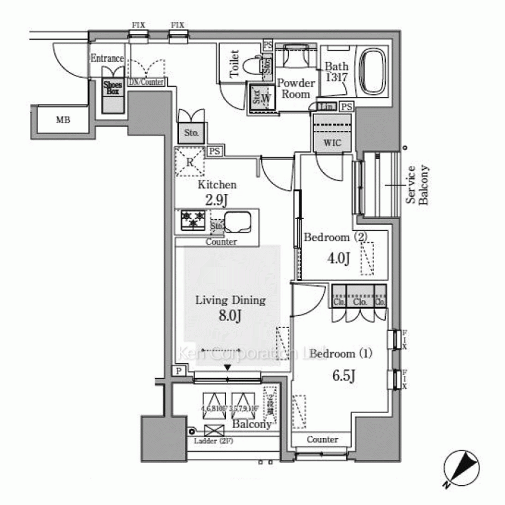 | 間取り / 方位 | 2LDK / 北西 |