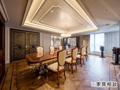 扉を開ければ、そこはヨーロピアンクラシックの粋を集めた至高の空間。壁面を彩る繊細なモールディングと、職人技が光る寄木細工のパーケットフロアが、住まう方の揺るぎない品格を物語ります。柔らかな光に包まれたリビングは、大切なゲストをもてなす「迎賓館」として、また静謐を愉しむ私邸として。細部にまで贅を尽くした意匠が、日々の暮らしを特別な時間へと昇華します。