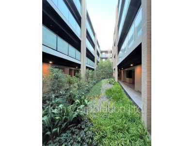 ジオ杉並松庵は井の頭通りの「松庵二丁目」交差点を南に入った通り沿い、まつぼっくり緑地に隣接して建つ四階建ての低層高級マンションです。戸建に囲まれた落ち着いた住宅街に建つこのマンションは、敷地中央部に中庭が設けられており、内外両面で緑に囲まれたランドプランとなっています。2階部分に設けられたエントランスホール、1階部分に緑を眺められるガーデンビューラウンジ。そのほか共用施設にはライブラリーラウンジがあります。