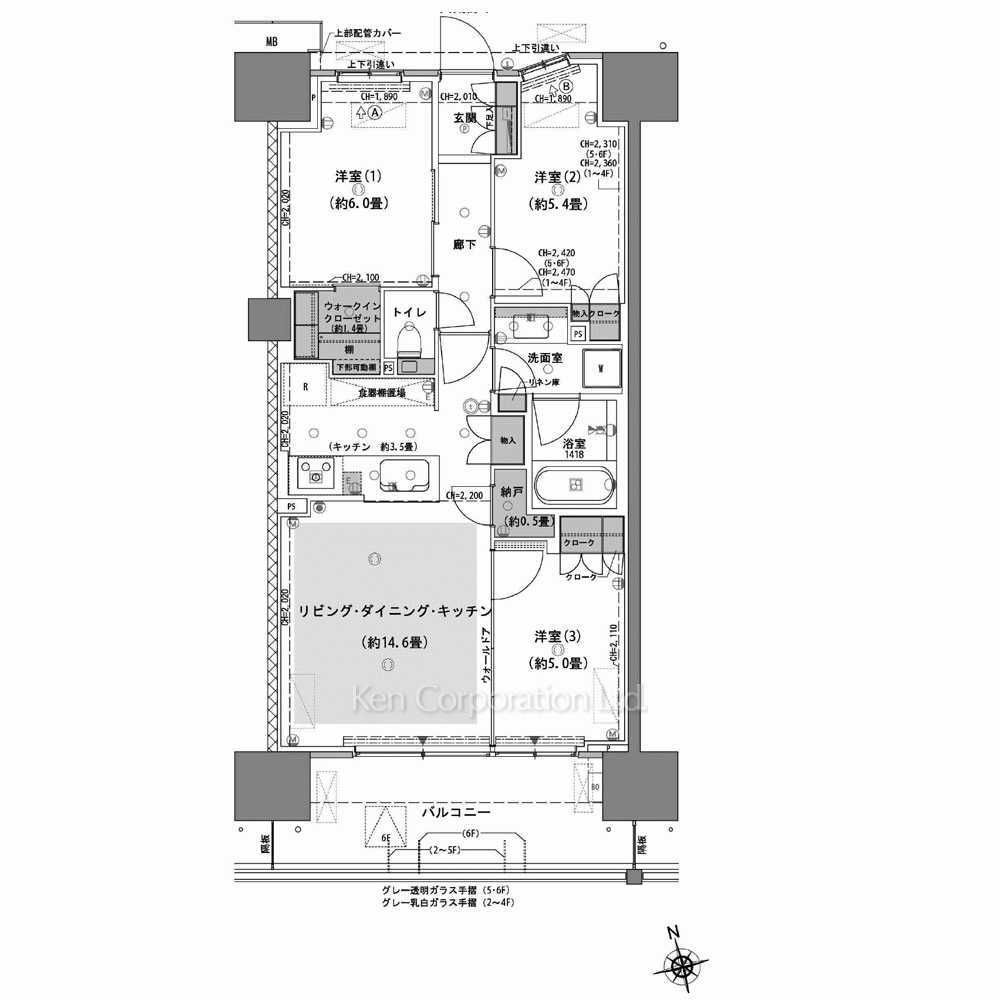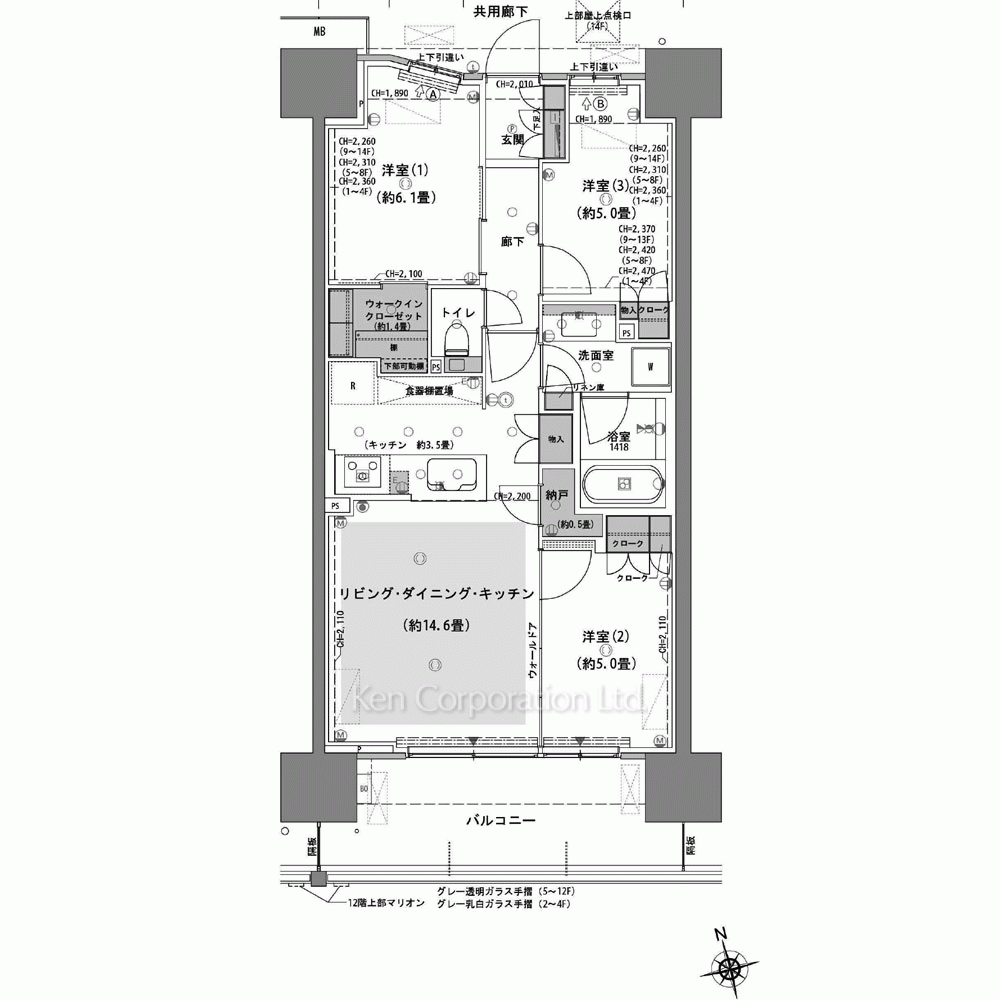 | 階建 / 所在階 | 地上14階建 / 5階部分 |